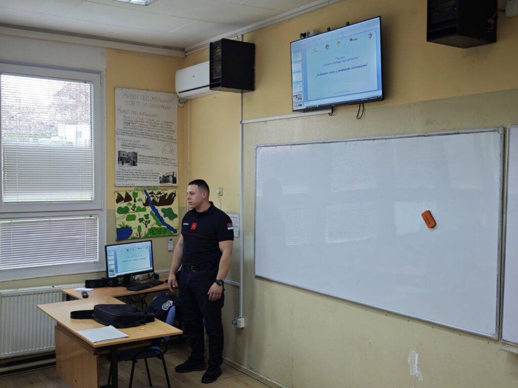 Протекле недеље је у нашој школи за ученике 1. и 7. разреда, организивано предавање Сектора за ванредне ситуације. Ученицима је, у складу са њиховим узрастом, прилагођено предавање на тему “Безбедност деце у ванредним ситуацијама”. Циљ овог предавања је упознати и упозорити ученике на начин реаговања у случају пожара, поплаве, земљотреса, како у школи тако и у својим домовима.